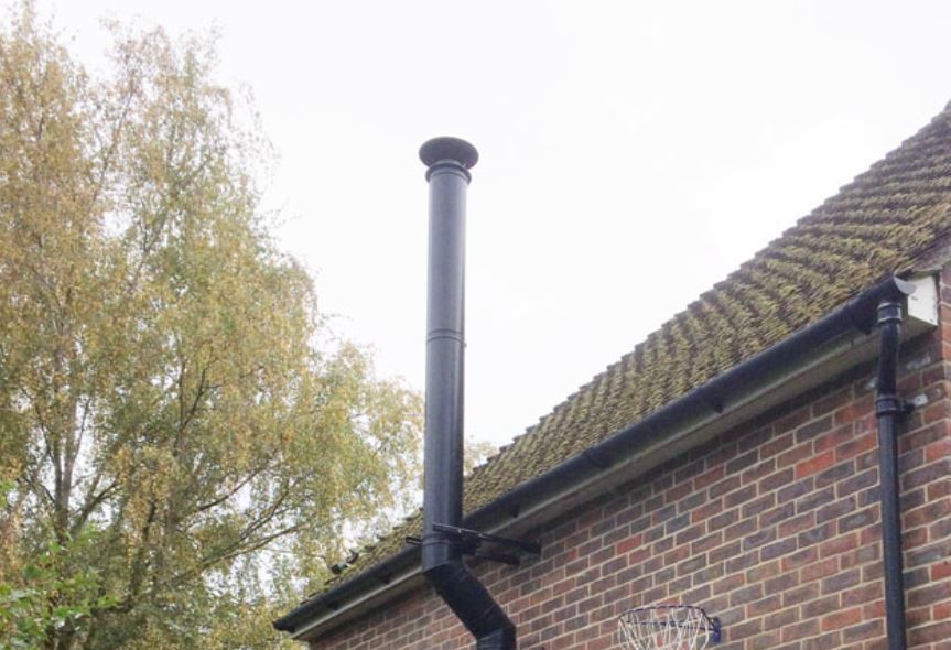 In cases where an internal route through the building is not practical, the chimney can instead be directed through an external wall and run externally.