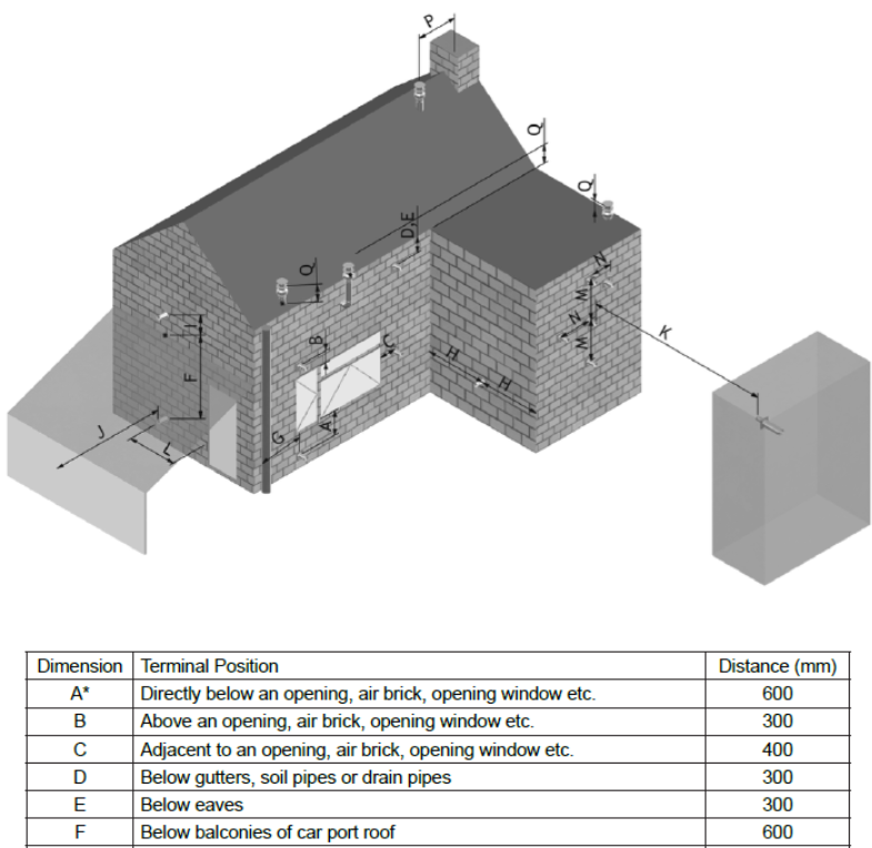 In cases where an internal route through the building is not practical, the chimney can instead be directed through an external wall and run externally.