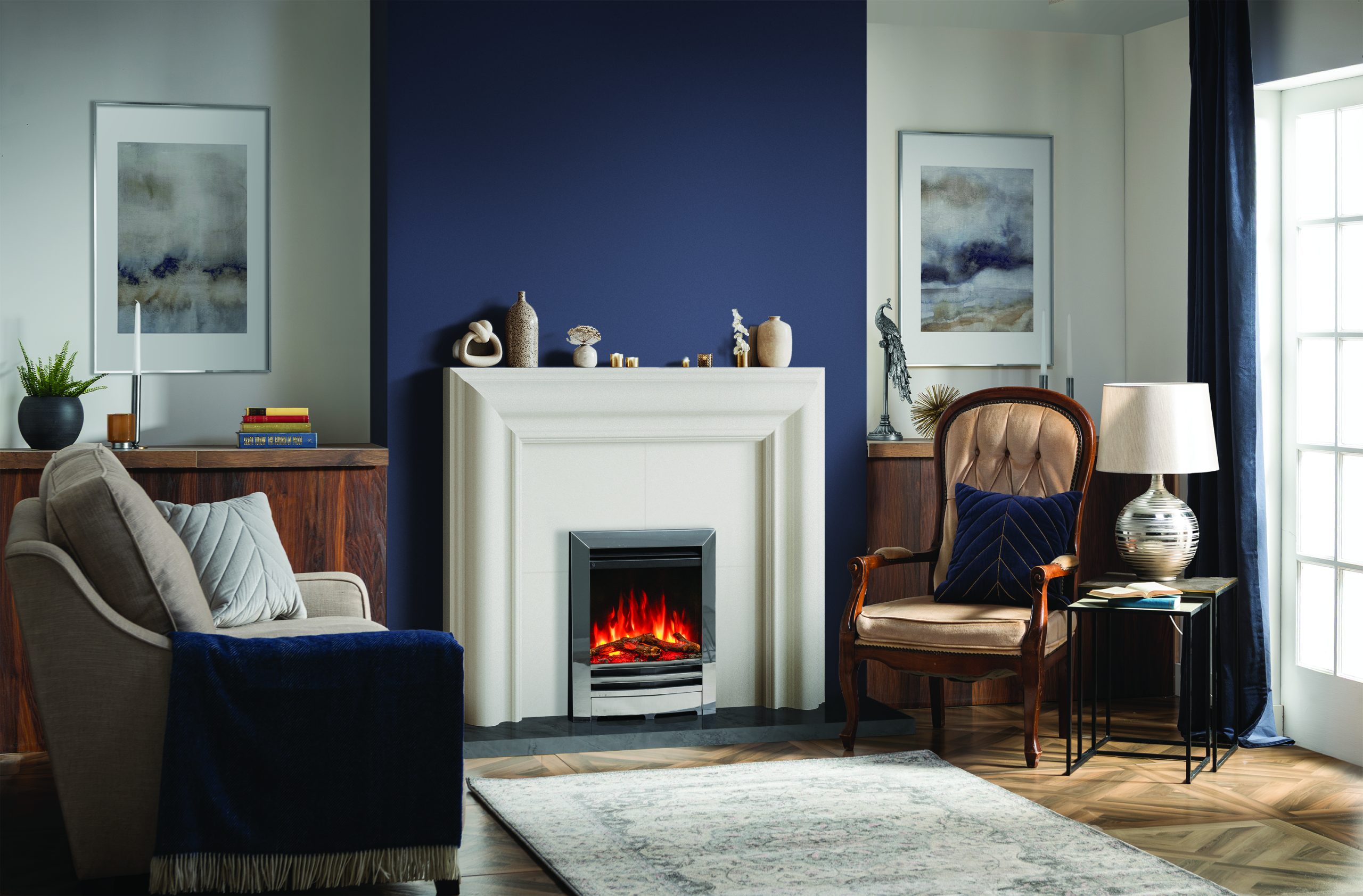 The Anya’s integrated ember bed up-lighting system completes the look, by casting light up through the authentic log and ember effects, enhancing the depth and realism.