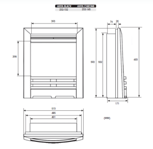 Anya electric fires feature a realistic log-effect which rests on a bed of blackened glass media. To evoke the charm of a traditional woodburning hearth, select log sections glow softly, working in harmony with the Anya’s flame and ember bed to create a warm, authentic visual.
