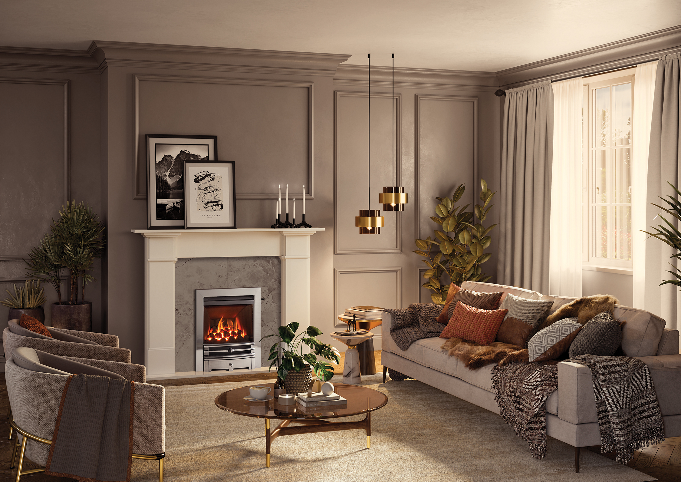 The classic Chartwell front for the Gazco Logic inset gas fire range is more traditional in style, bringing a touch of unassuming luxury into a room.