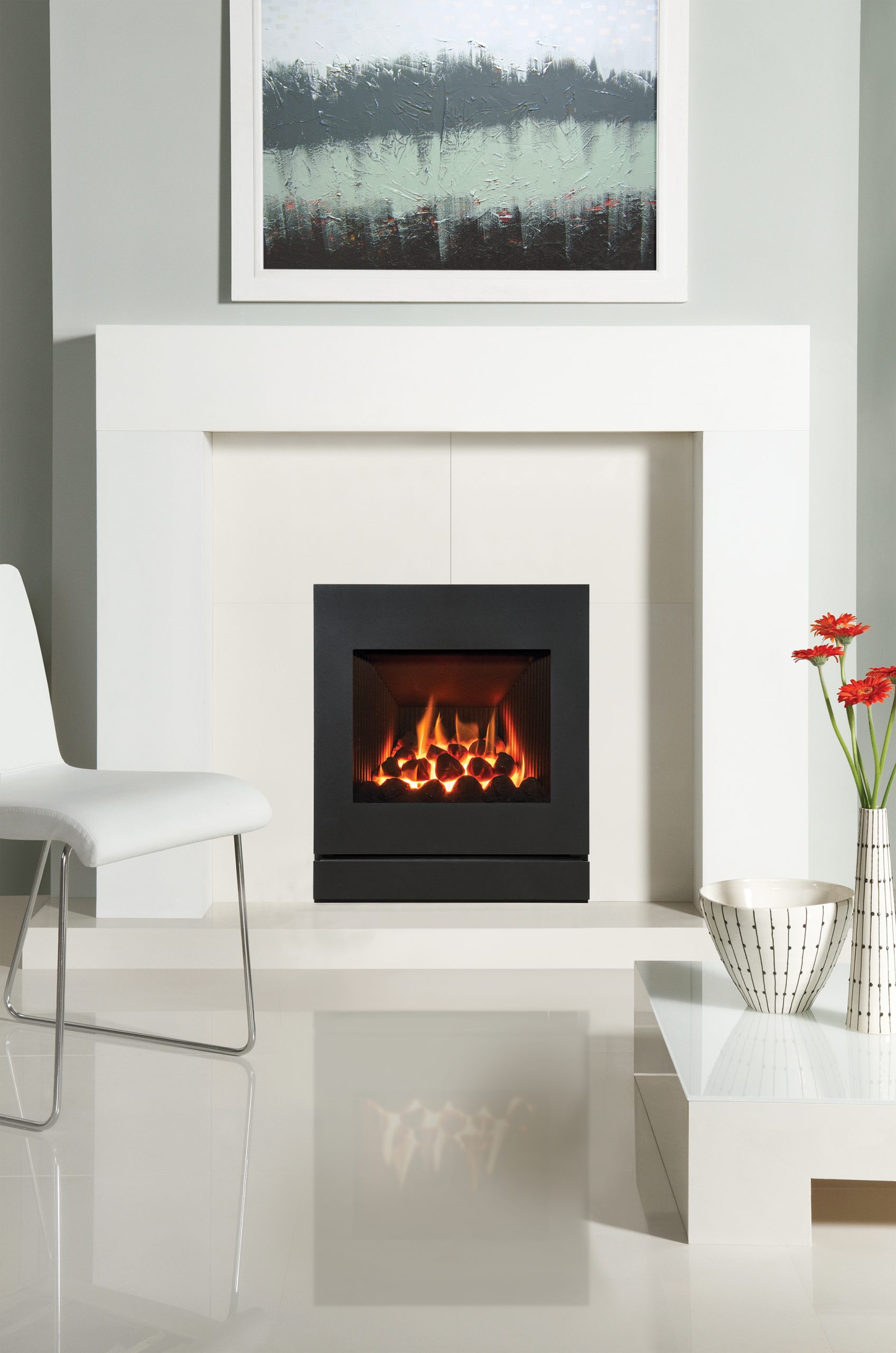 Similar in form to the Gazco Designio2 Glass front, the Designio2 Steel front has a clean and contemporary design which perfectly complements the range of 16″ Logic HE gas fires.