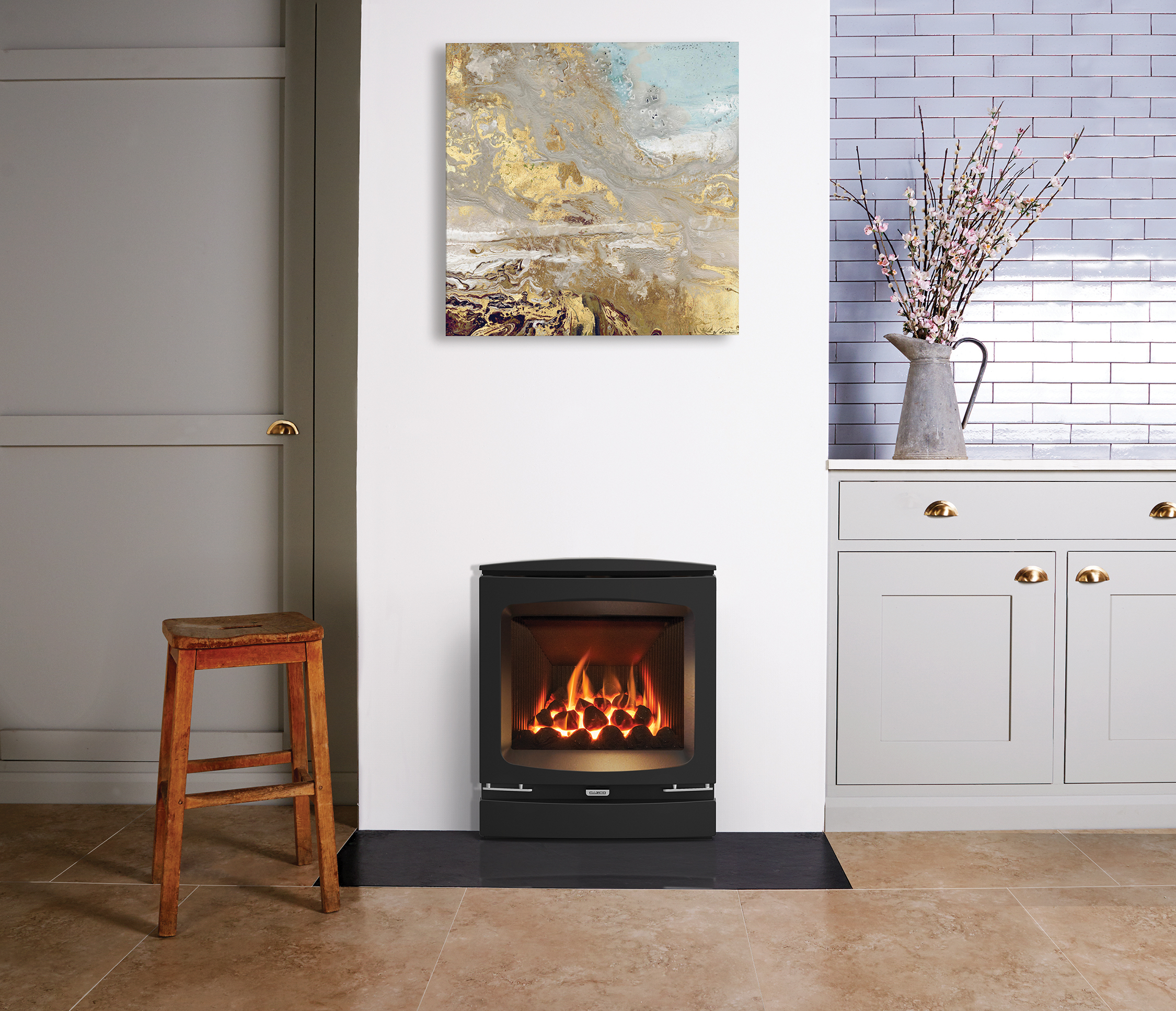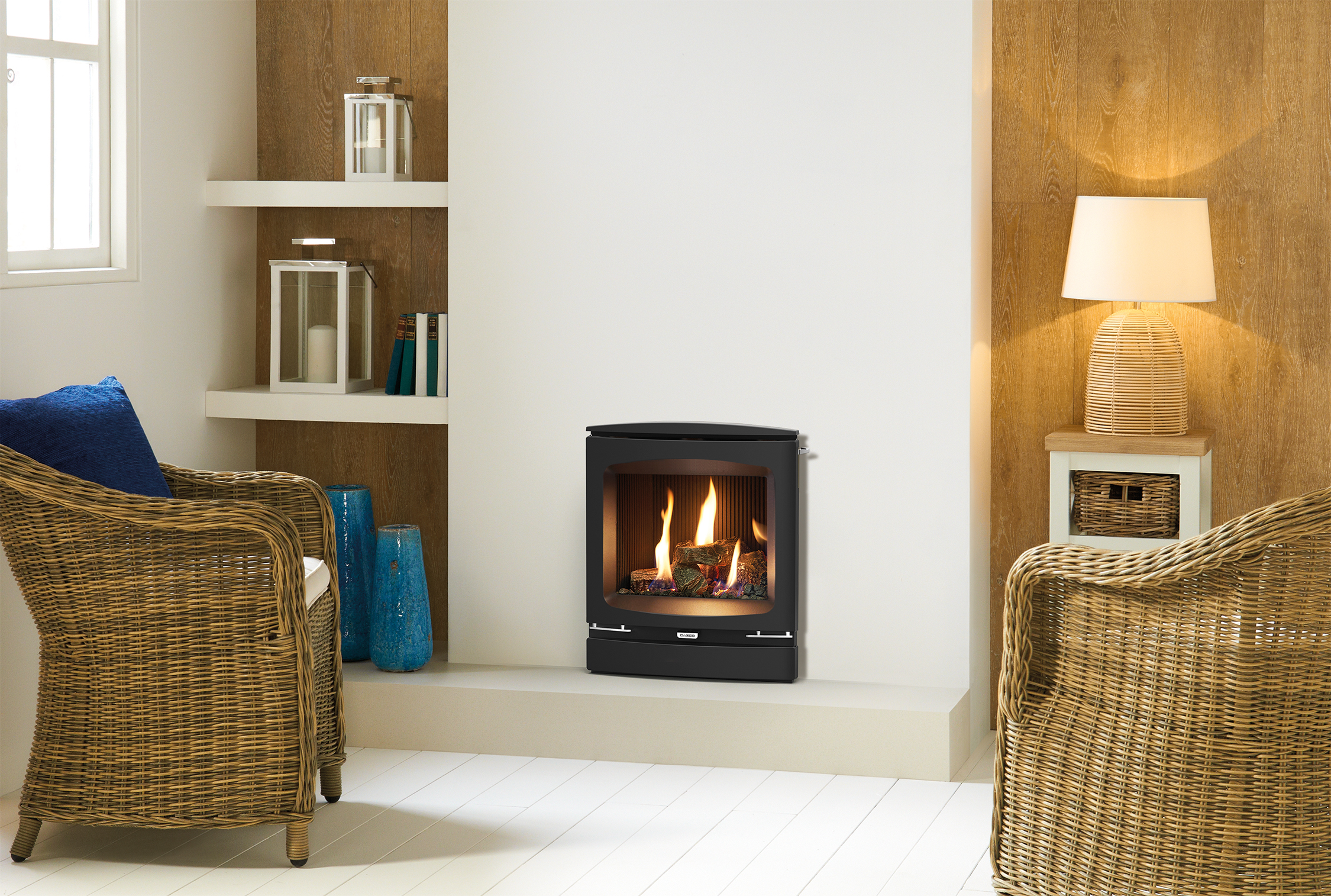 Available for the high efficiency Logic HE range, the Gazco Vogue Inset front offers an inset stove aesthetic. Featuring a cast iron construction with stainless steel detailing, the front is compatible with Slide, Manual and Remote control Logic HE models.